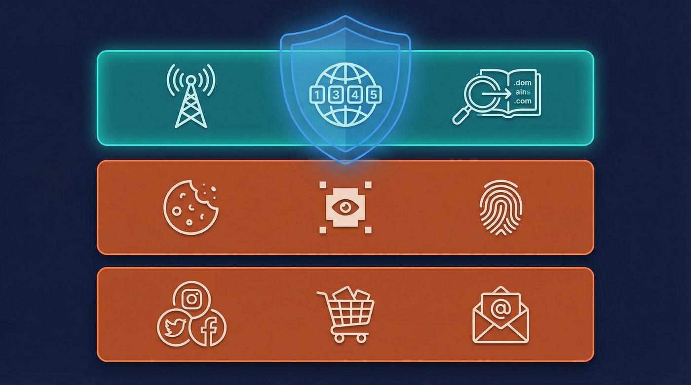 To understand how you are tracked online, it helps to divide the ecosystem into three distinct levels. Each level uses different technologies, and protecting yourself requires different tools.